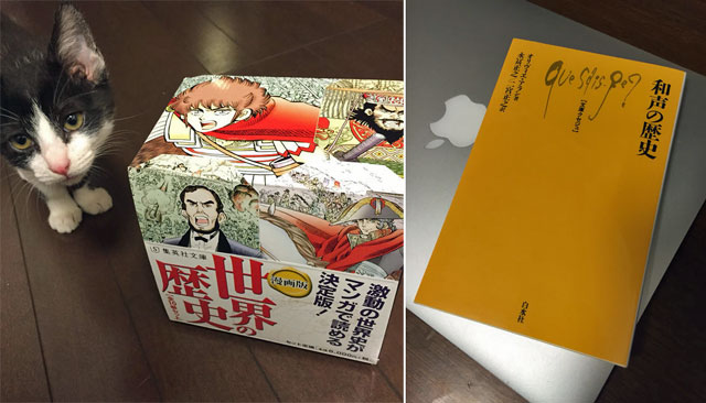 梱包を開けると、鍵盤ねこが不思議そうにのぞきにきました。お前には難しすぎるよ。猫に小判ならぬ、猫に世界史だ。