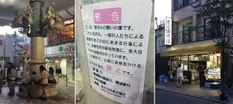で、駅の階段を降りると、ヨハン・シュトラウス像があるんですね。シンフォニーヒルズへのランドマークとして建立されたと思うのですが、足元でギャルはたむろしてるし、そばでガールズバーのリクルートをやっているしで、シュトラウスおじさん完全に浮いてますがな。「酒盛り」「寝泊まり」禁止の張り紙も。