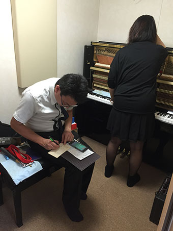 今回、お願いしたのはアイリスピアノさん。これまで河合楽器の調律師にお願いしていたけれど、クルマもピアノもメーカー系列のメンテナンスは値段が高い(アップライトピアノで18,000円程度)ので、新しい方にお願いしました。初回割引で9,800円。子供にかける教育費がハンパない今日この頃、価格を重視さぜるを得ませんデス。